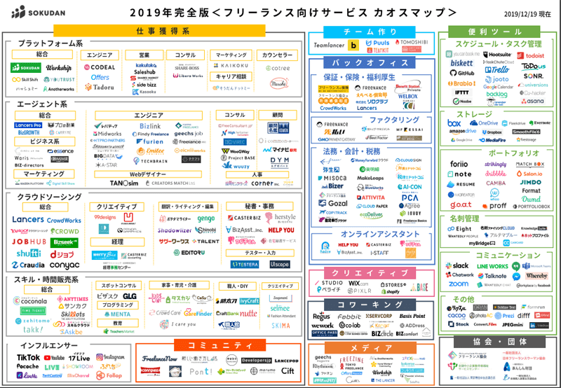前もって準備しても、どうしても困ってしまっている時には、上のフリーランス向けサービスのカオスマップを元に、どこかのサービスに頼ってみるのも一つの手です。