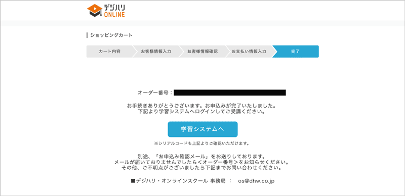 講座申し込みの決済まで完了しましたら、デジハリ・オンラインスクール学習システムへログインします。